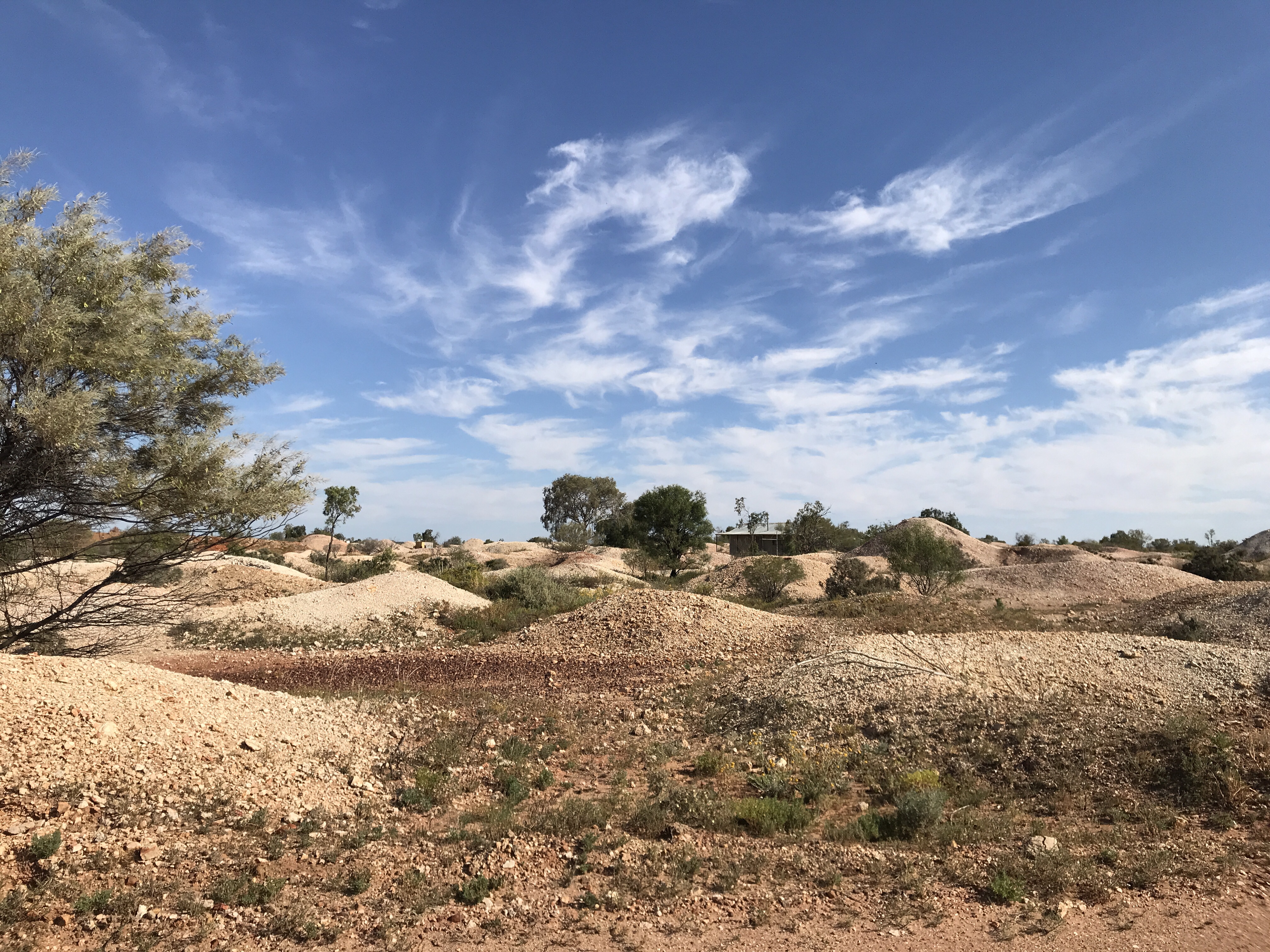 White Cliffs is a small mining town, named after the Opal bearing limestones on which the town is sited. Opal mining started in the 1890’s and continues to this day. The landscape is dotted with small white mounds, surrounding deep vertical holes created by individual miners looking for opal. It is a barren and denuded landscaped.
