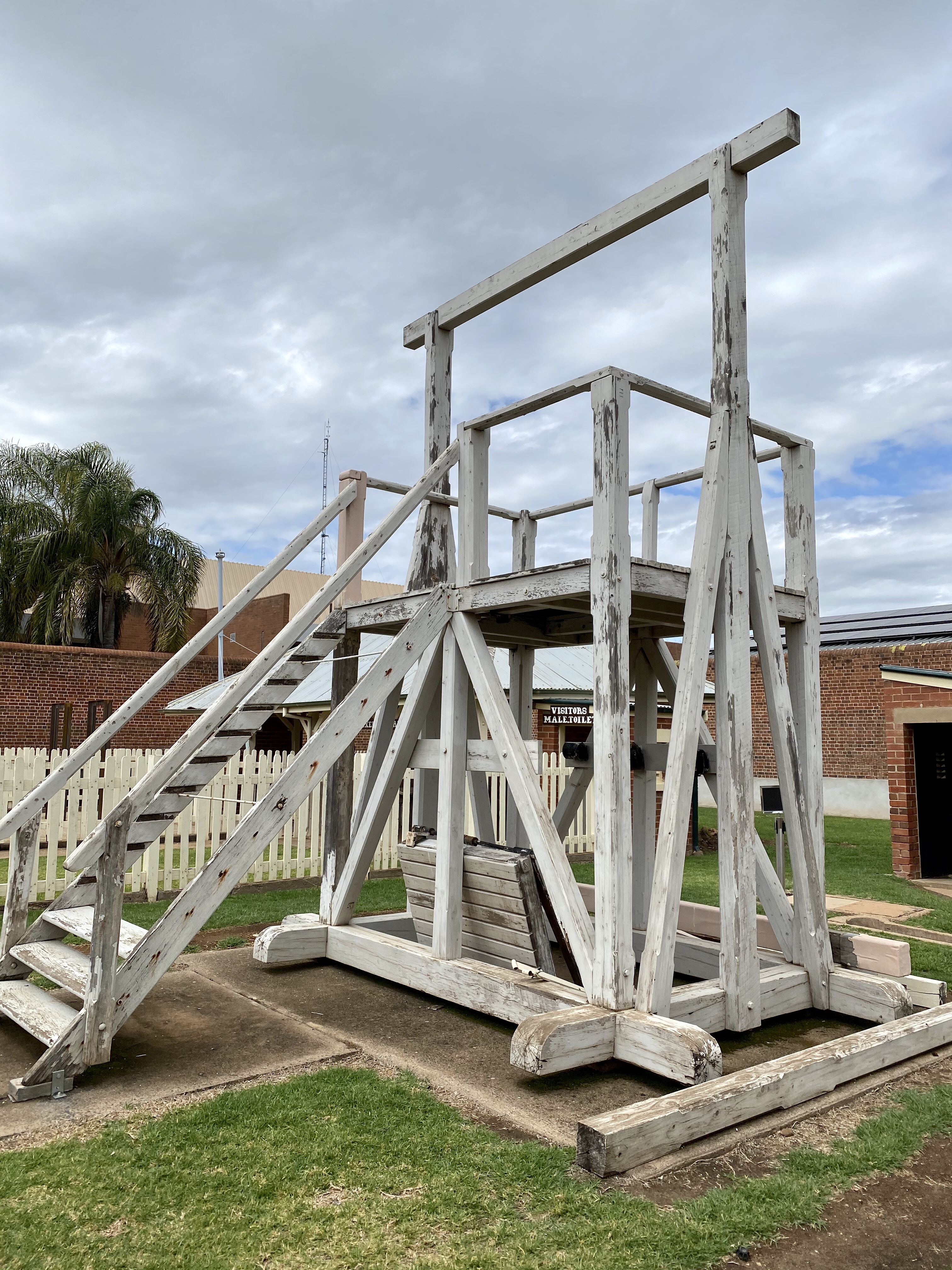 Dubbo is famous for its outdoor zoo, which we gave a miss on account of the large number of school kids around. However, we did visit the Dubbo gaol. It is a relatively small but well preserved gaol built in 1887, with both a female and male section. Eight men were executed at this jail for serious murder offences, the last one was in 1905. Three of these men were buried in unmarked graves inside the prison compound and are still there. The gaol was finally closed in 1966.