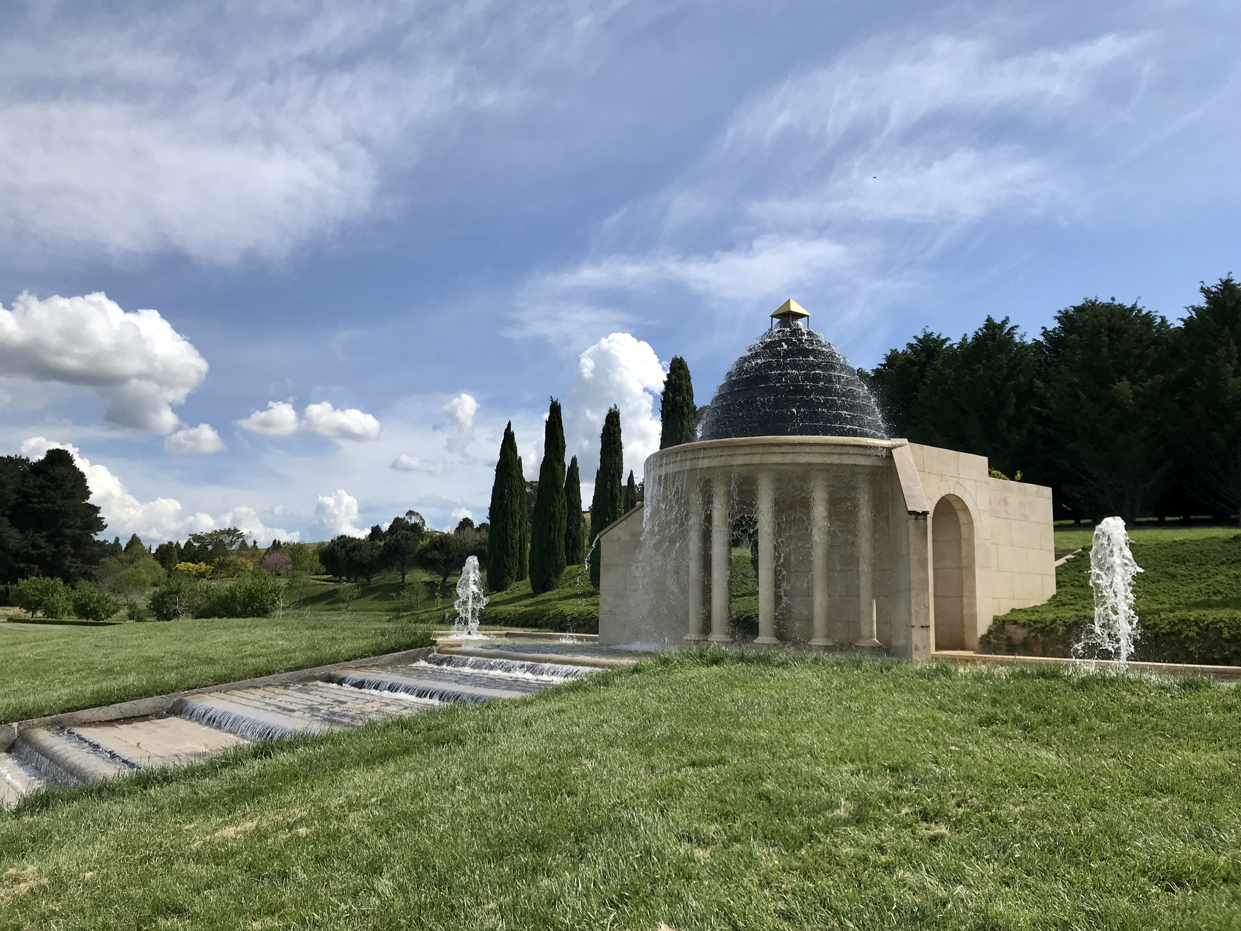 The gardens are still being extended further, but with over 30 years of planting the heart is well established. I strolled past the Obelisk (next to the glamping spot), and through the water garden, which was in full bloom. Then through the Camelia walk. The Mayfield Garden apparently has the largest collection of camellias in Australia. I walked up towards the Chapel for a view over the gardens and the Hawkins property. And then stroll back down through the pine trees, a lovely foresty walk, to the area around the house, the Hawkins’ family garden.