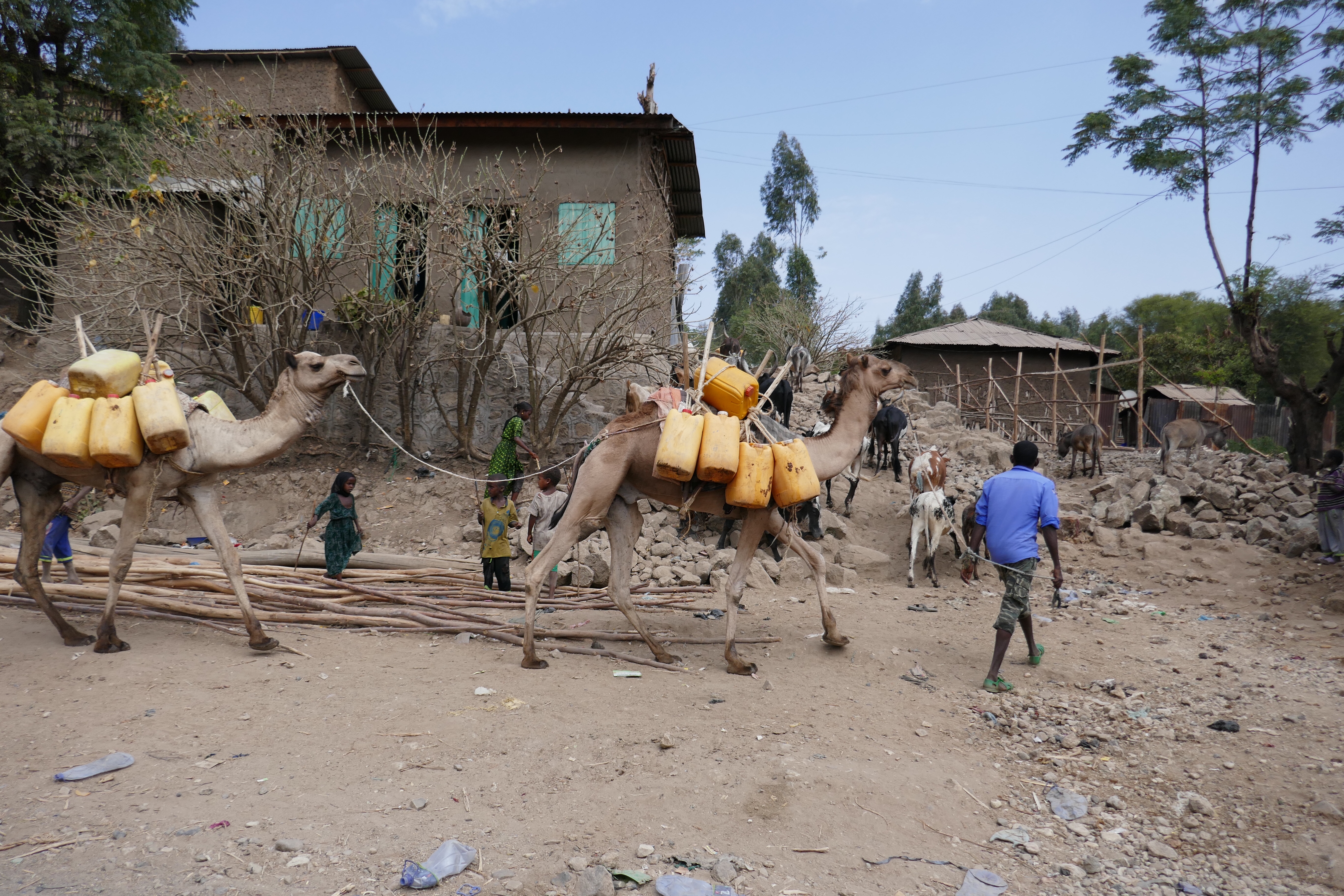 The villages in the Rift Valley have a large muslim population, and a large number of Somalian immigrants. Houses are in a very different style and very colourful. We see lots of camels and donkeys carrying water containers. Like in most of rural Ethiopia, water is available from a common well and needs to be collected each day.