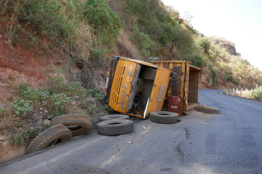 The gorge separates the Amhara region in the north, from the Oromiya region in the south where Addis is located. The winding road that crosses the gorge, even with its new bridge, is known as one of the most dangerous roads in Africa. The ongoing tectonic activity causes the thin layer of tarmac to break up regularly and slide downhill. As a consequence, the road is covered in large cracks and potholes.