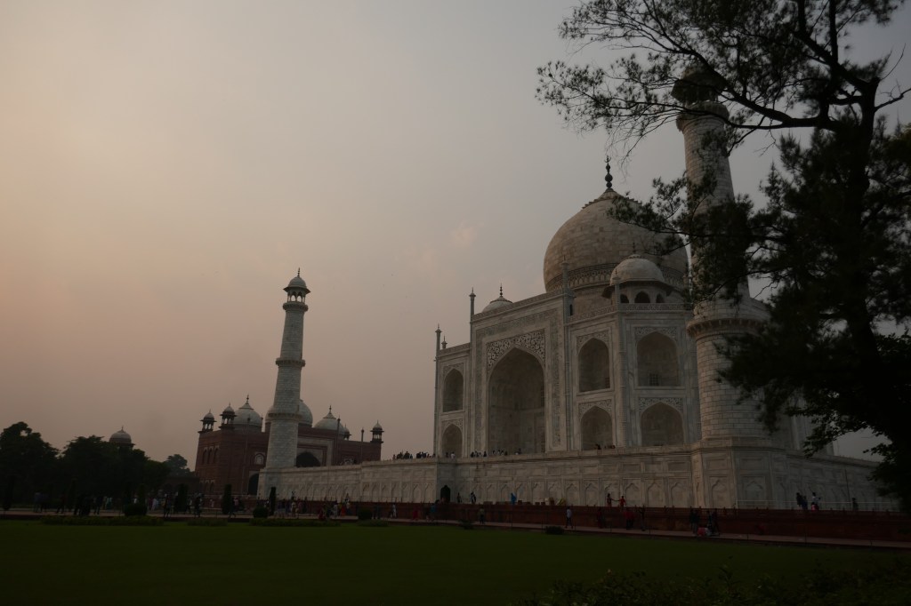 You feel the excitement building as we hop off and walk the final section through the main gate (Darwaza). As everyone else, we come to stop at the first sight of the Taj Mahal. It is an amazing building, photo’s can’t really do it justice. It is delicate, larger than expected, ethereal beautiful, and becoming more tangible as the sun sets and the colours change.