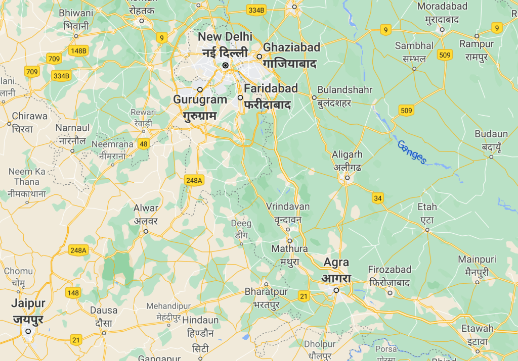 Fatehpur Sikri has been a real surprise. It is just of the main road from Agra to Jaipur, a tiny village not even visible on the map below. We head back into our bus, and continue to drive towards Jaipur, our next stop.