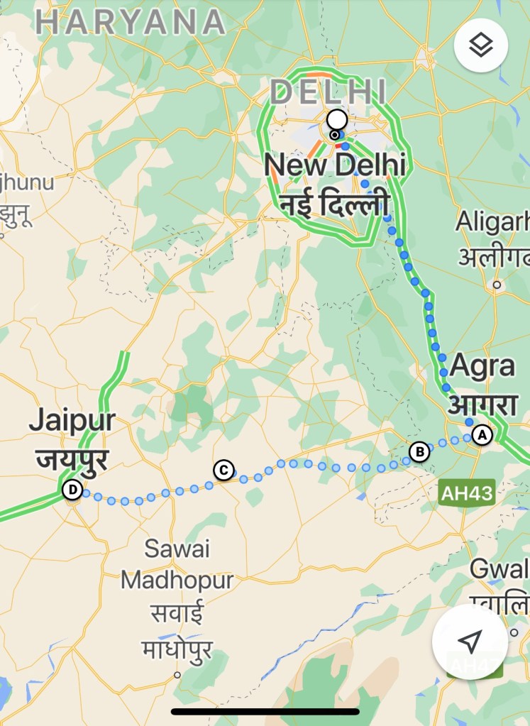 Jaipur is our first stop in Rajasthan. It is located 240 km, a four hour drive, west of Agra. If you do this drive, I suggest you stop at the deserted ancient city of Fatehpur Sikri along the way, as well as the Chand Baori step well in the village of Abhaneri.