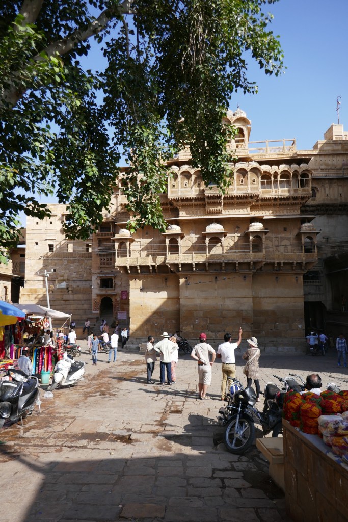 Jaisalmer, the Golden City, is everything you imagine a fortress city in the desert of Rajasthan to be. The old town, Jaisalmer Fort, is set on top of a hill, a sprawling citadel with high sandstone walls surrounding it. There are large buttresses and bastions. The fort was built by Rawal Jaisal in 1155 AD, and is one of the very few historical forts left in the world that is still actively lived in. This creates an magical atmosphere, like walking into a fantasy novel.