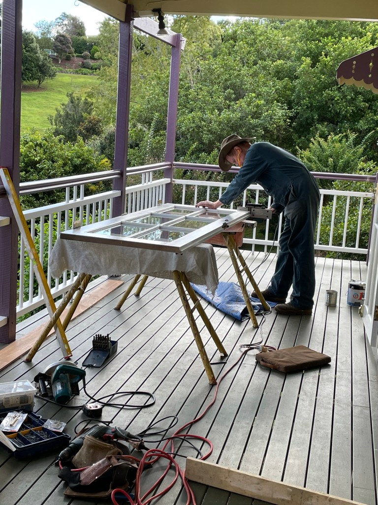 We have been focussing on carpentry and smaller jobs this week. Mike removed two of the broken fly screens, and we needed a carpenter to fix the door surrounds. We walk past a local carpenter everyday and I had taken note of his phone number. Dave turns out to be quite deaf, still works of a flip phone and provides his bill neatly written out on paper with a carbon copy, but his work is excellent!