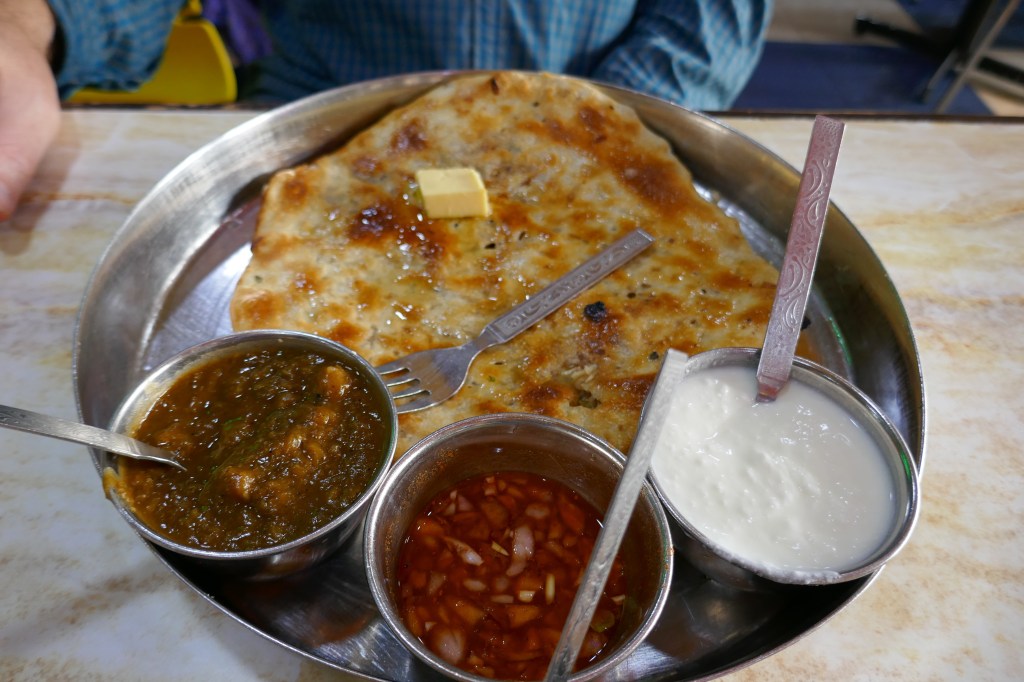 They offer other types of food, however, the Kulcha, a bread filled with vegetables and spices and served with sauces and raita (yoghurt) is amazing! One of our most favourite meals on our trip.