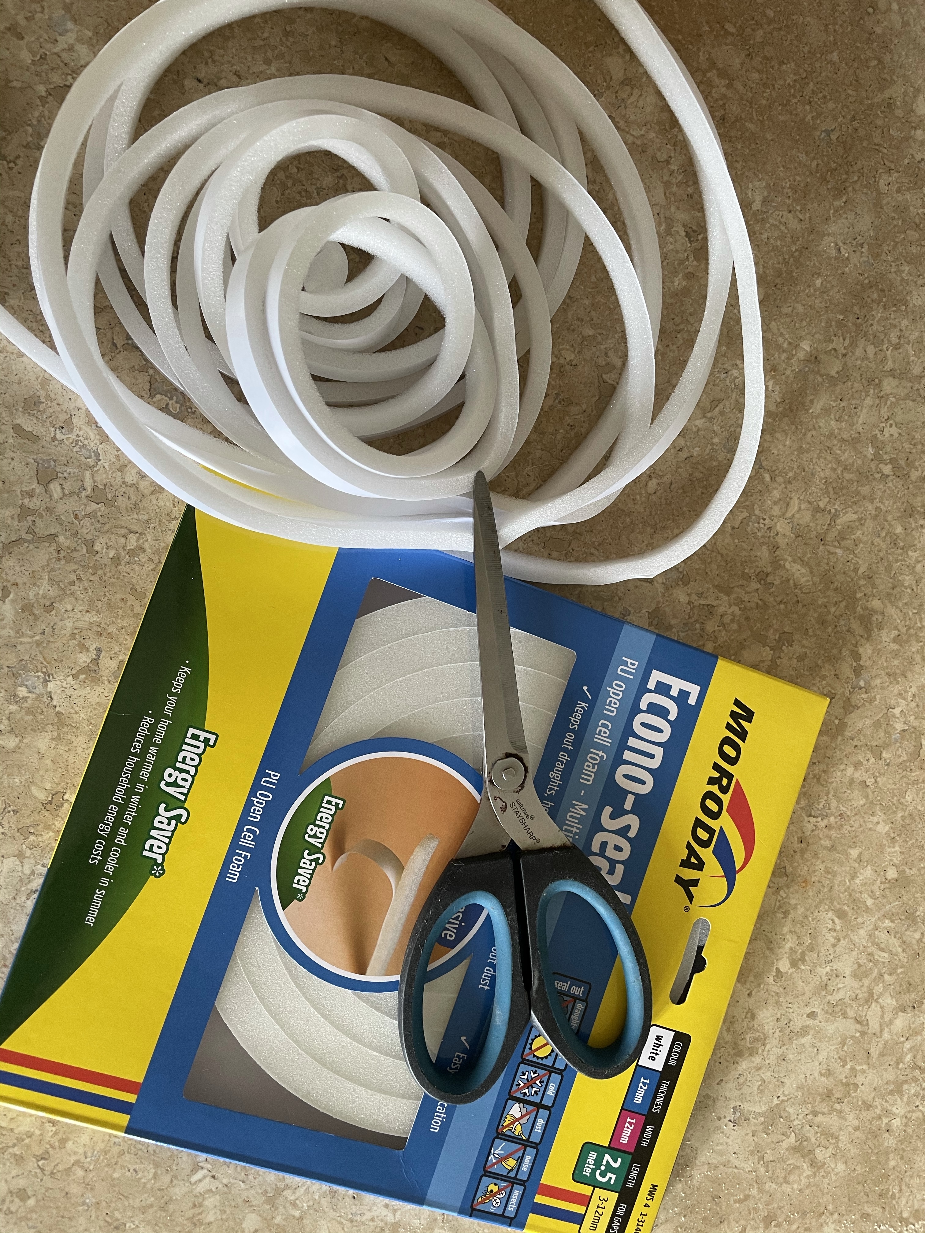 However, as I was cleaning the door frames I found remnants of silicone sealant which had to be removed first. And then I had to touch up the paint work. Which then had to dry before I could put on the insulation tape.