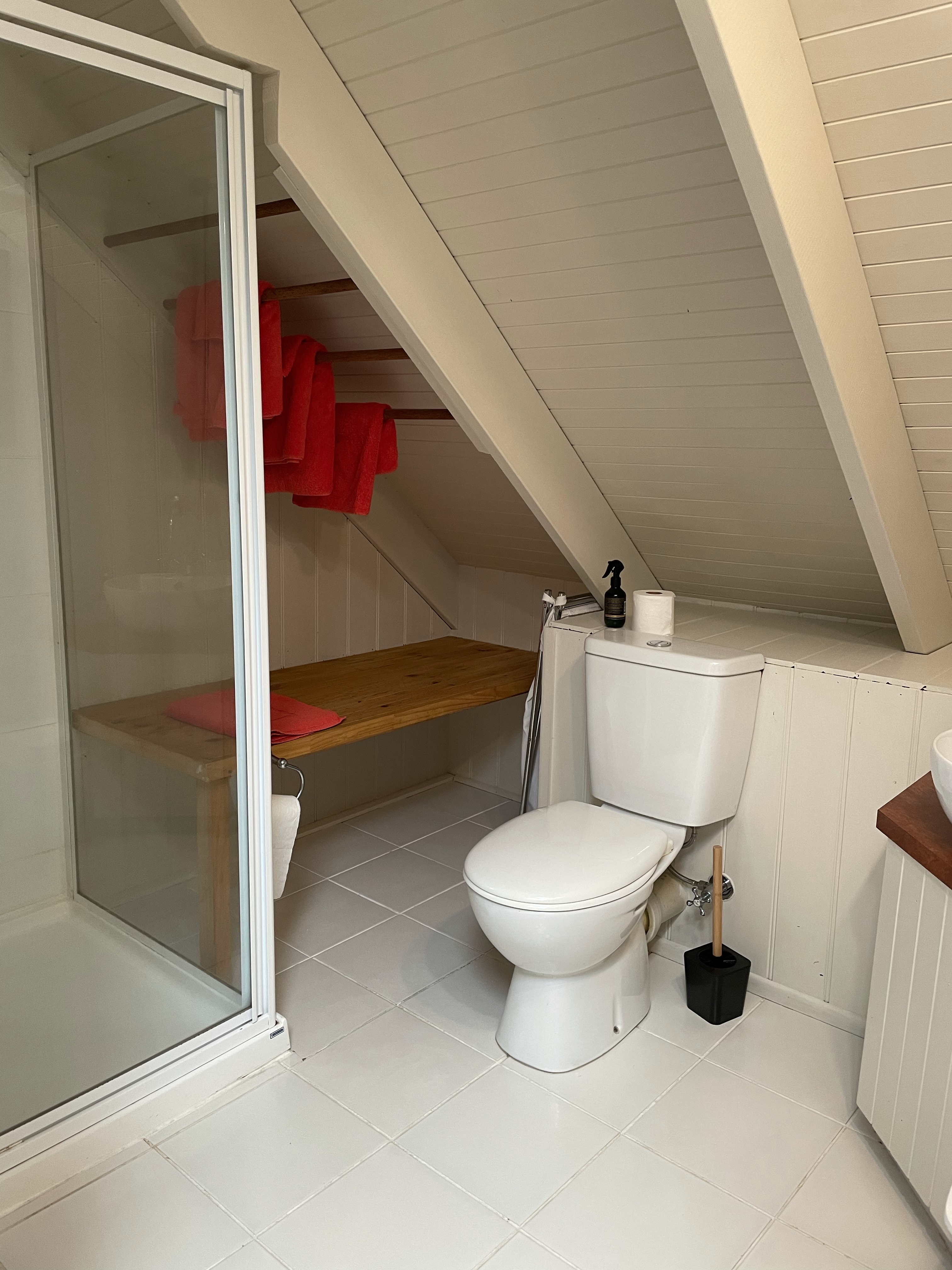 We also managed to finish painting the loft. There was quite a bit of discussion on what to do with the bathroom; leave it as is, paint the beams white, or do it all…