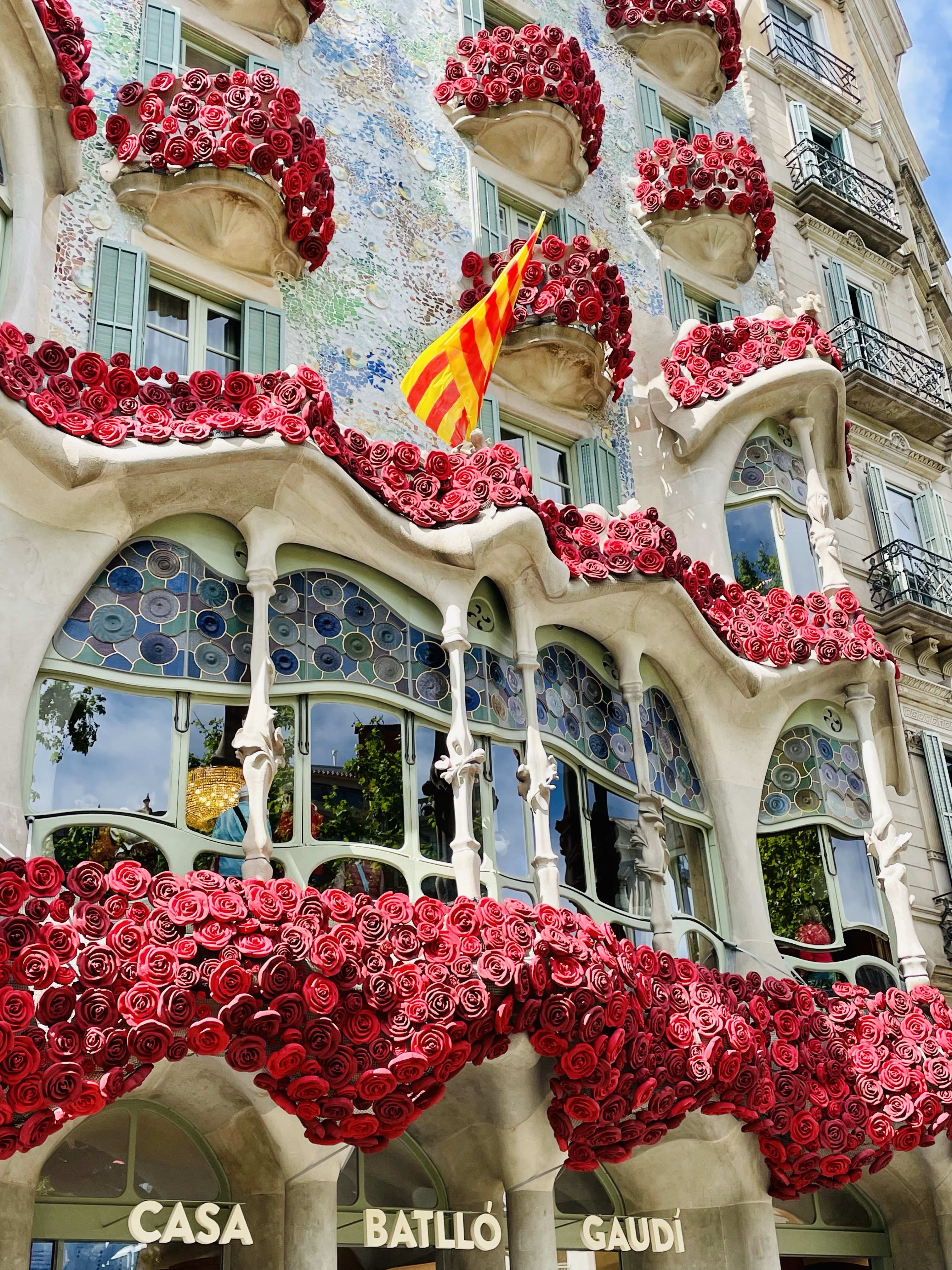 The outside of the buildings are definitely worth a walk past, and if you are fortunate to visit on St George’s Day (Sant Jordi), you will find Casa Battló decorated with large roses.